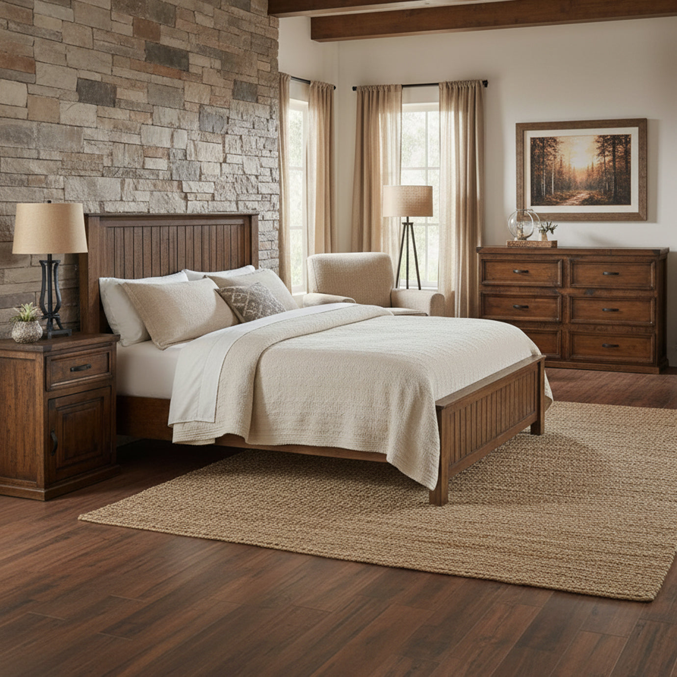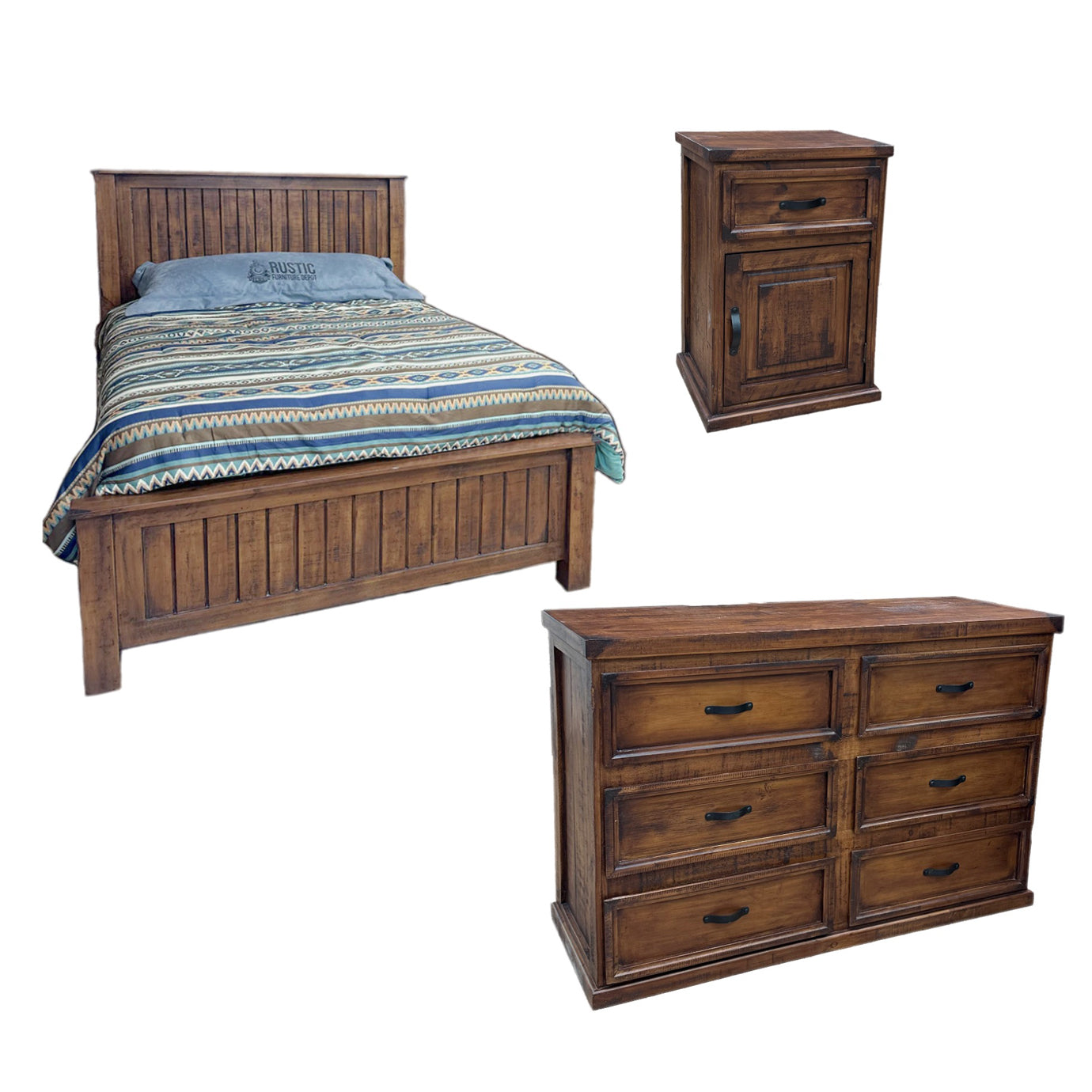 The Native Doorbuster Set is one of the best values on the market. The 3 pc set includes a bed, 6 drawer dresser (or chest) and 1 nightstand. Finished in our Vibrant Golden Oak stain showing a refined rustic sheen, this solid wood bedroom set is perfect for any room!