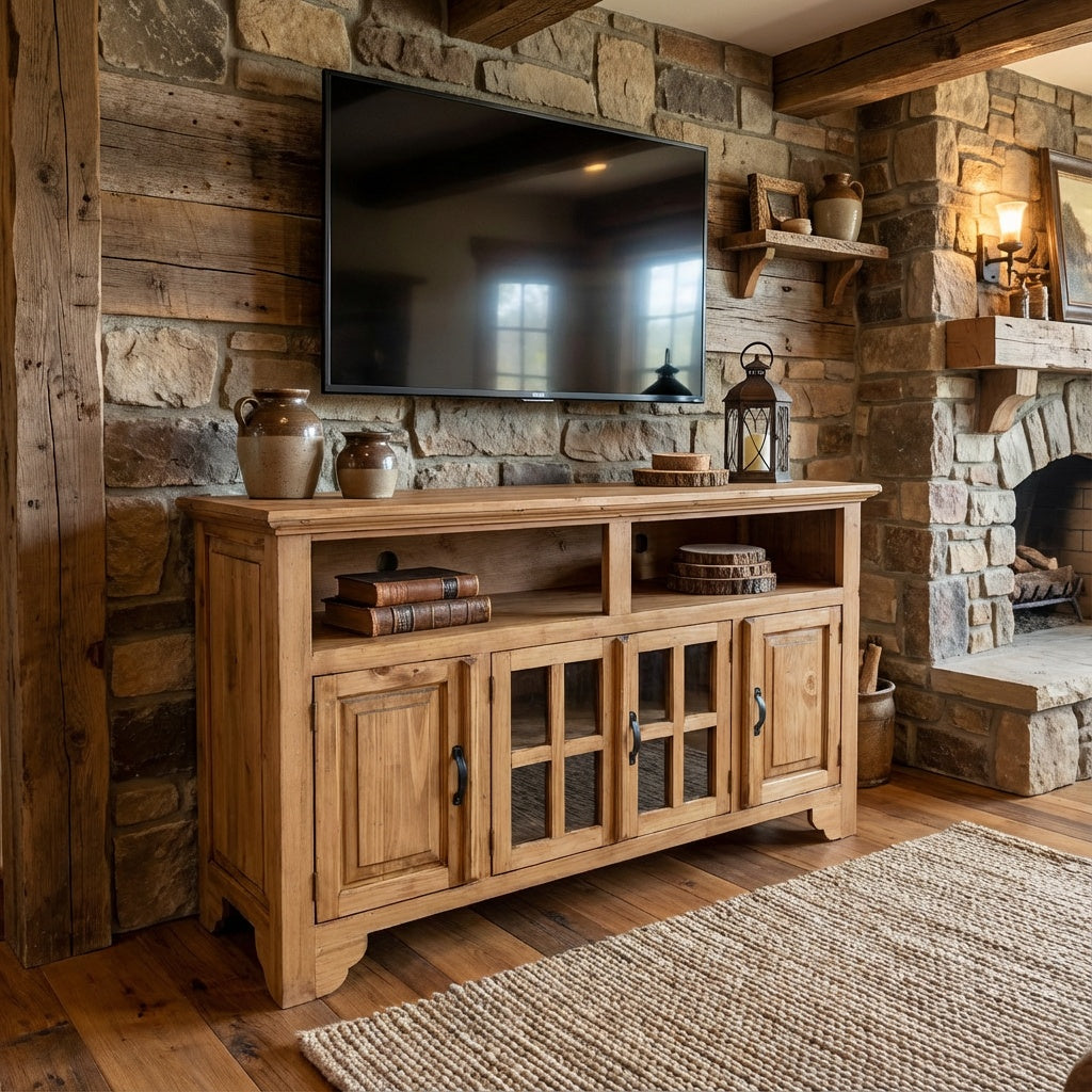 Introducing the Stockyards 60" Tv Stand. A solid wood TV Stand at an unbeatable price! The Stockyards Dining Set is finished in beautiful natural wax stain. Crafted with solid pine, the 1/2" thick top offers durability and warm rustic charm style, making it the perfect choice for your home!