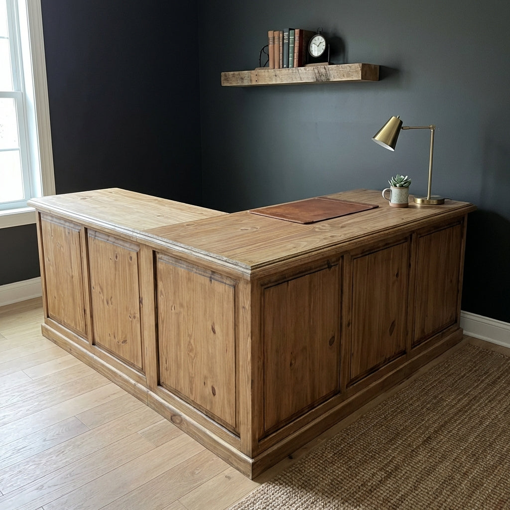 This desk if perfect for those with a large office area or in need of a large desk top. It features storage on both ends.